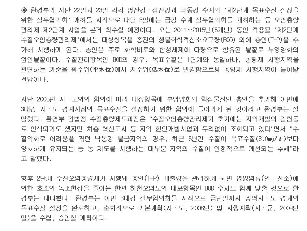 Á¦¸ñ: ȯ°æºÎ, 2´Ü°è ¼öÁú¿À¿°ÃÑ·®Á¦ º»°Ý Âø¼ö